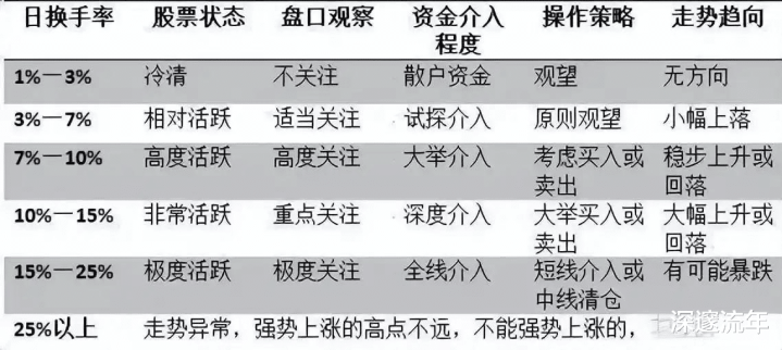 不过,需要特别强调的是,新股或者次新股的高换手率则参考意义不大,以上换手率对应的状态对新股或次新股则可能不适用。